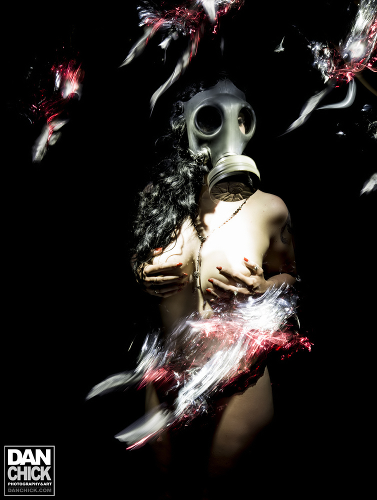 This shot was done in four separate lighting moments within a single exposure.  Theresa and I were not exposed within the image together simultaneously, each of us were lit independently by the other.